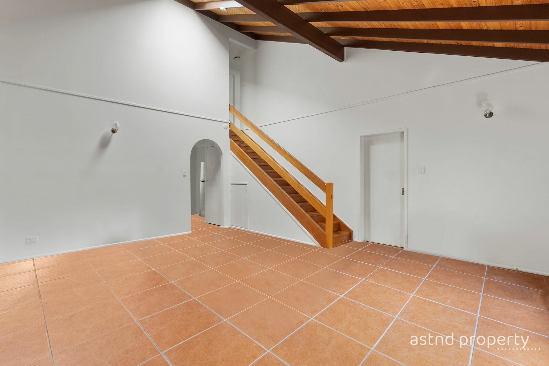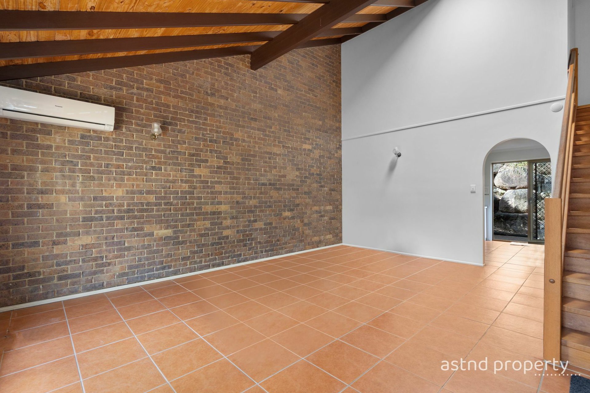 Open-Plan Living: The downstairs living area is with gorgeous cathedral high ceilings makes it very airy and inviting, featuring an air conditioning unit to keep you cool and comfortable year-round.